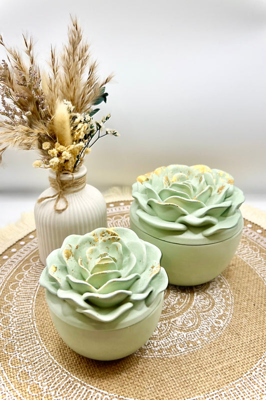 Große Elegant Rose - Rosen Schalen Kerze mit Blattgold (verschiedene Düfte)