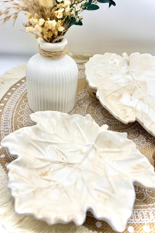 🍂 Handgemachte Keramik-Tabletts in Blattform – Ahornblatt & Bananenblatt als stilvolle Herbstdeko