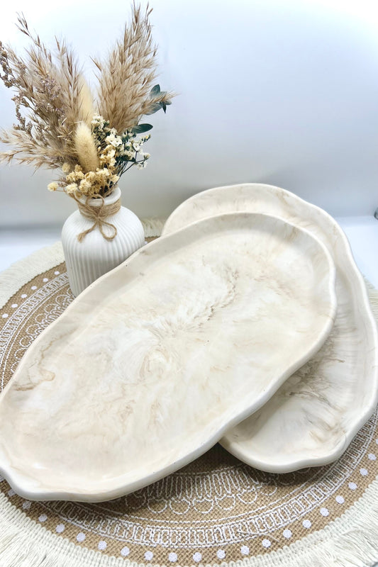 Handgefertigtes Tablett in marmorierter Optik – Wolken- & Herzform