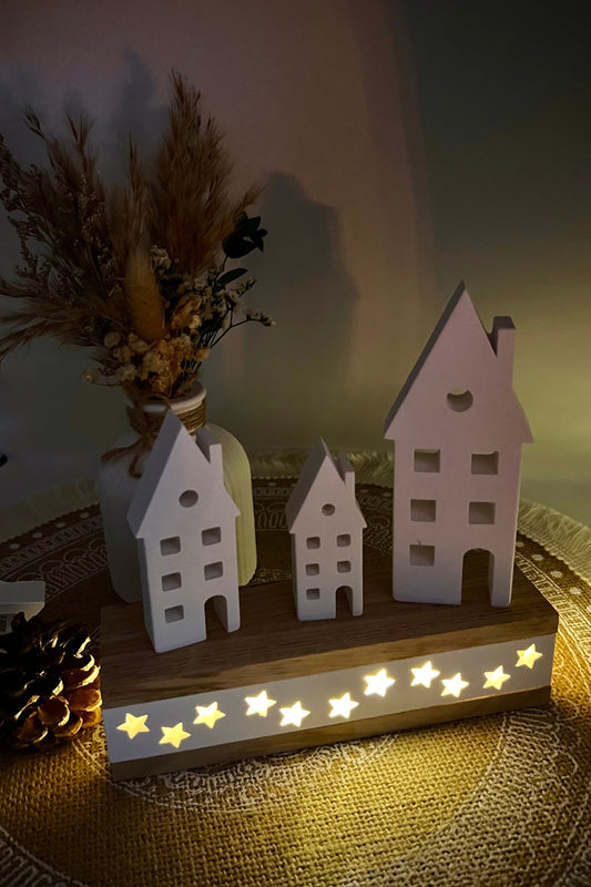 Leucht-Häuschen aus handgegossener Keramik inkl. LED-Licht & Geschenkverpackung – Weihnachtsdeko & Geschenkidee