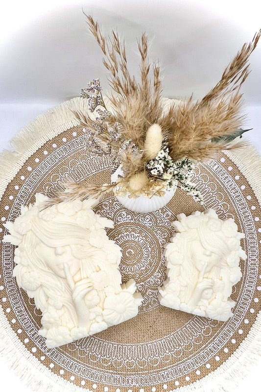 “Flower Goddess” – Skulpturkerze mit floraler Magie | Handgegossene Göttin in Cremeweiß oder farblich abgesetztem Blüten-Design