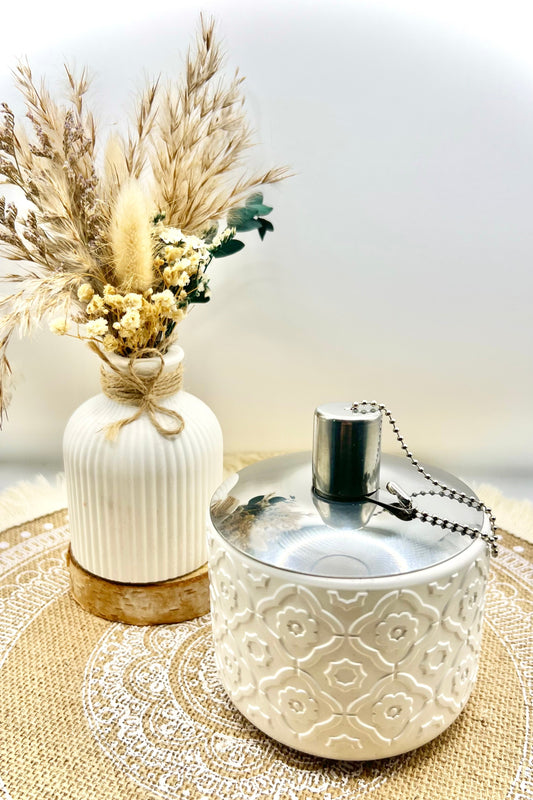 Tischfeuer “Pure Moments” – handgegossene Keramik mit Edelstahleinsatz | stilvolle Öllampe für entspannte Stunden