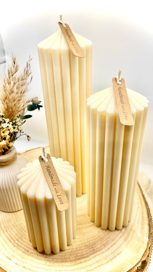 Designkerze „Lumi“ – Statement Rillenkerze - Natürlich & zeitlos in cremeweiß