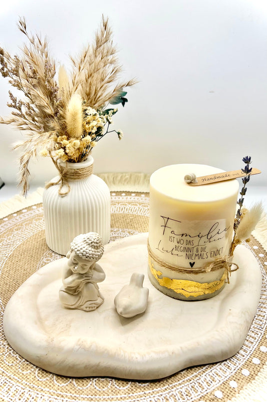 Edle Statement-Beton-Kerze – handgefertigt auf Betonsockel mit Gold-Details