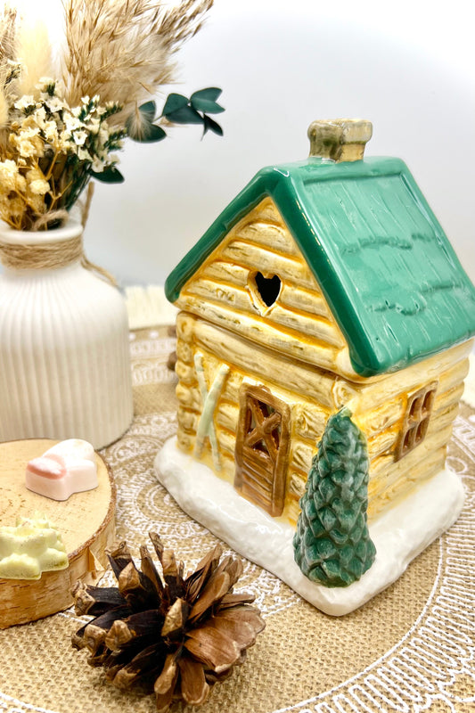 Keramik Duftlampe Skihütte / Berghütte – Winterliche Wachs Melts Lampe für gemütliche Deko