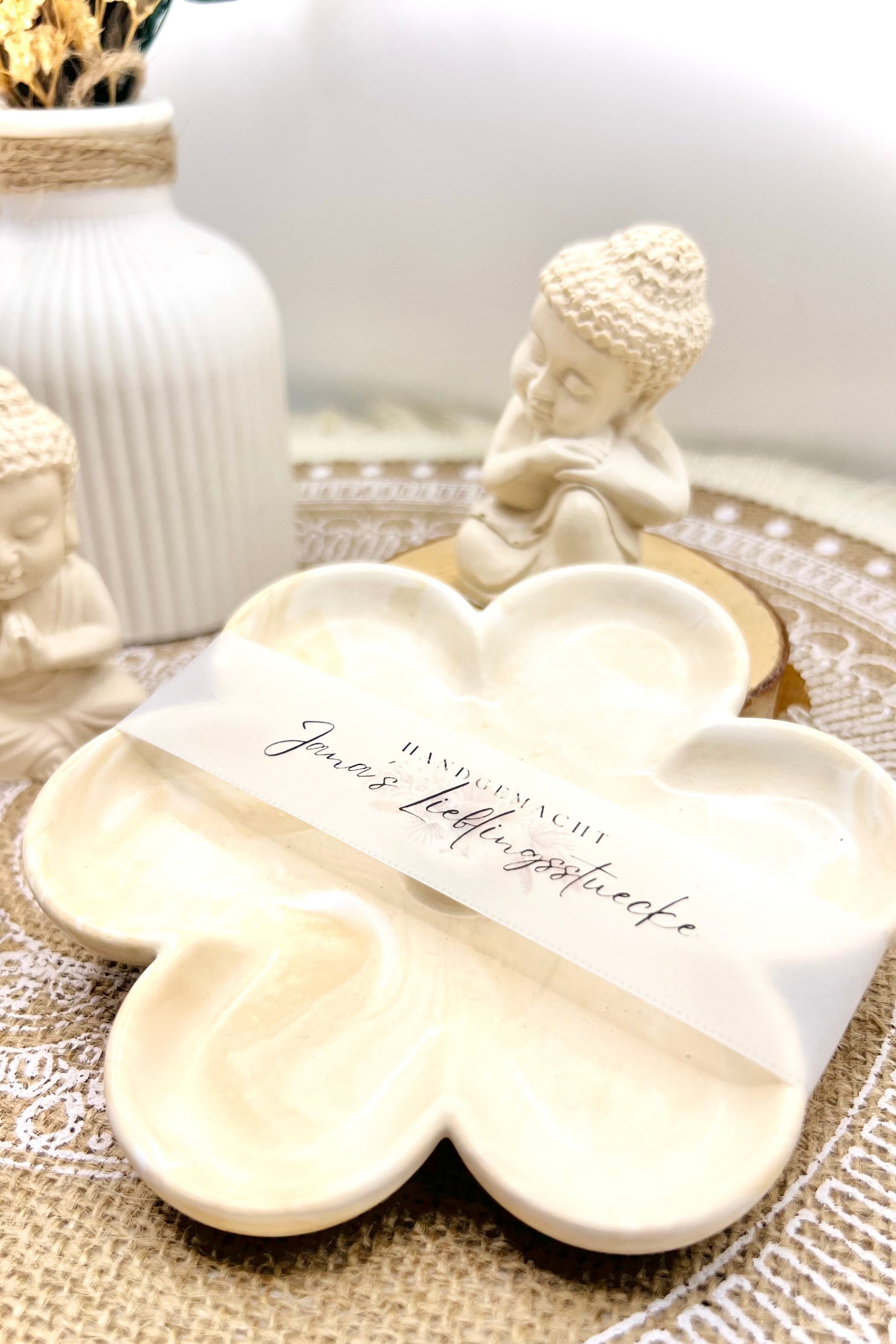 Unsere handgefertigte Räucherstäbchenschale in Blütenform vereint stilvolle Ästhetik mit praktischer Funktionalität. Gefertigt aus hochwertigem Gießkeramik und sorgfältig versiegelt, ist diese Schale feuerfest, wasser-, schmutz- und fettabweisend – ein exklusiver Eyecatcher für dein Zuhause oder ein einzigartiges Geschenk.
