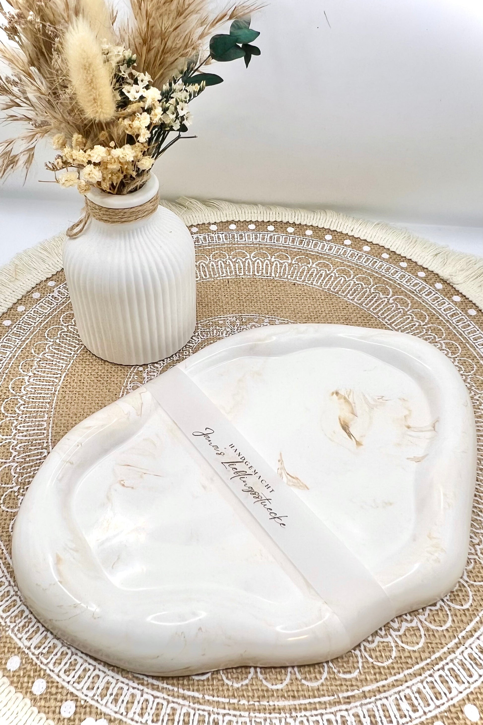 Handgefertigtes Tablett in marmorierter Optik – Wolken- & Herzform