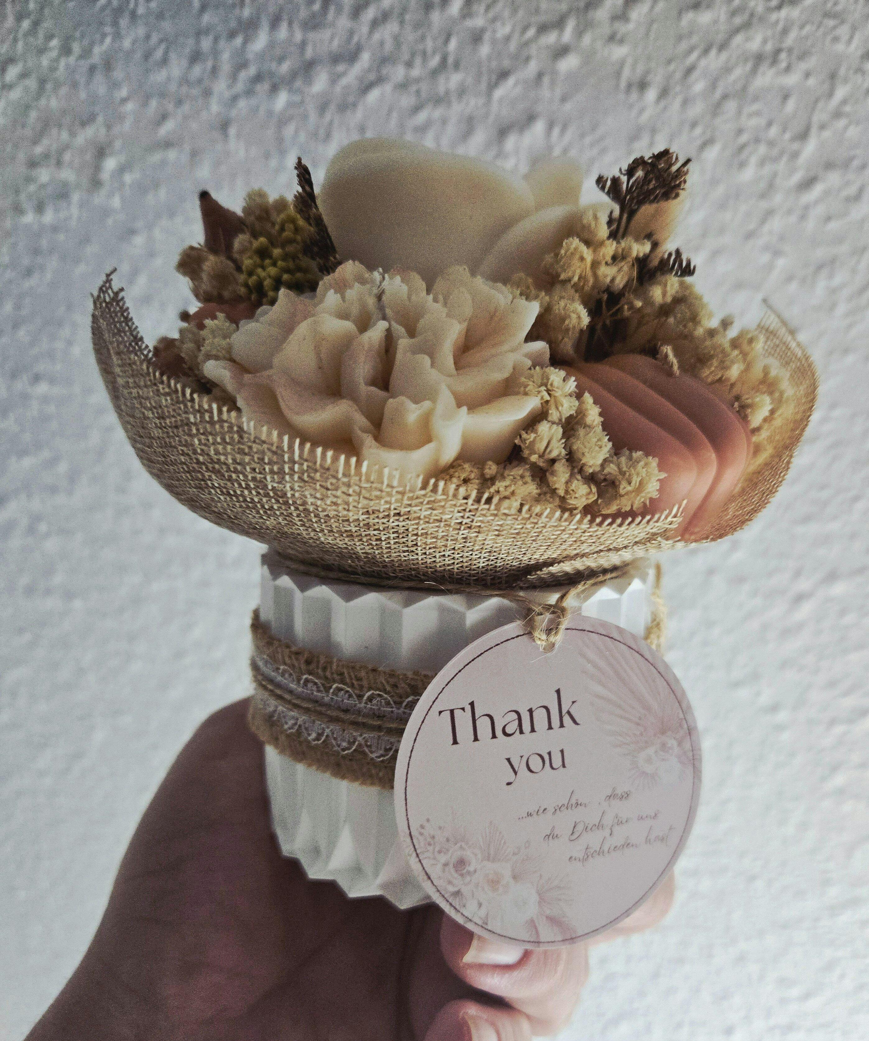Kombiniere deinen Strauß mit unseren handgegossenen Deko-Tabletts oder Kerzenhaltern aus dem Shop. Dazu passen außerdem wunderbar unsere Herbstkerzen – für ein stimmiges Gesamtbild, das deine Räume noch gemütlicher macht.