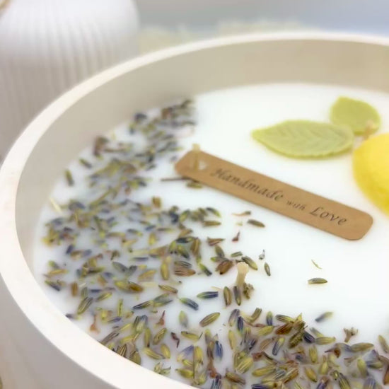 Tauche ein in das Gefühl eines warmen Sommertages auf einer sonnigen Terrasse – mit unserer handgegossenen Lemongras - Lavendel - Kerze in einer eleganten Keramikschale.
