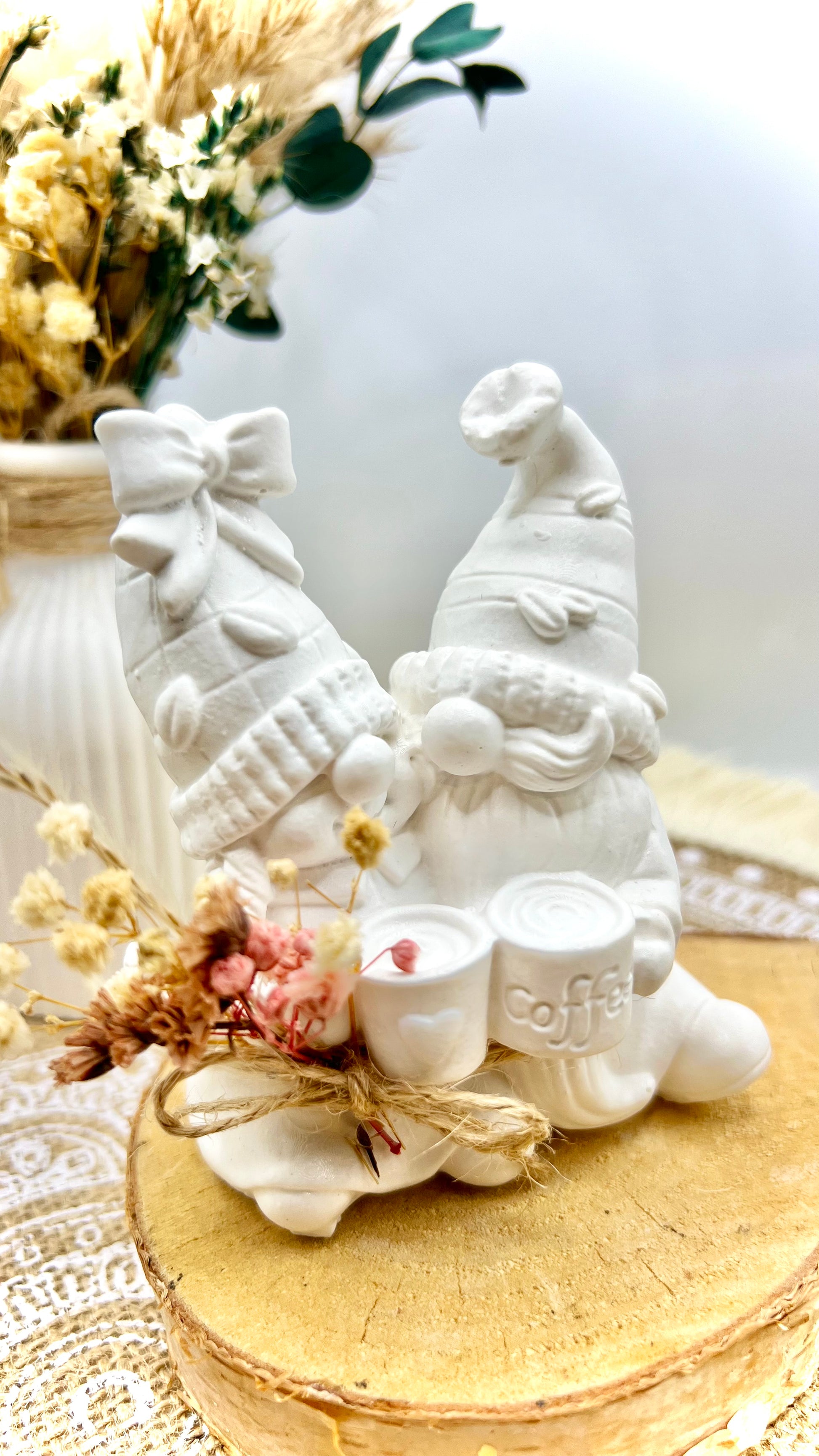 Unser handgefertigtes Wichtel-Liebespaar ist eine zauberhafte Dekoration, die Liebe und Harmonie in dein Zuhause bringt. Jedes Paar wird aus hochwertiger Gießkeramik gefertigt und mit einem zarten Trockenblumensträußchen verziert – ein einzigartiges Geschenk oder ein besonderer Hingucker für dein Zuhause.