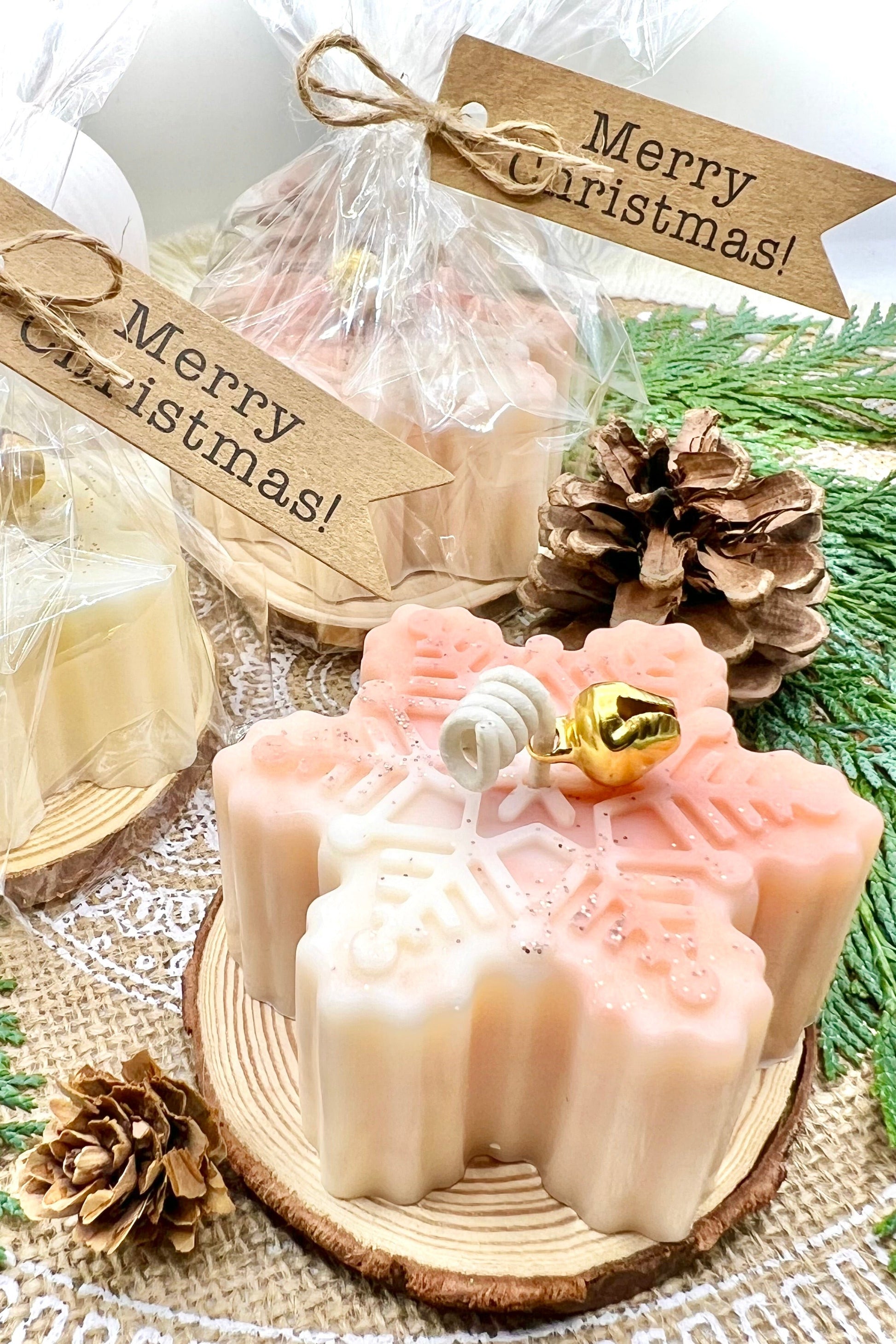 Jede Kerze wird liebevoll als Geschenk verpackt, mit einem kleinen Glöckchen auf einer Holzscheibe dekoriert – perfekt, um dir selbst oder einem Lieblingsmenschen eine winterliche Freude zu machen.