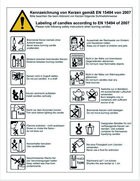 - Lassen Sie die Kerze nie unbeaufsichtigt brennen.
